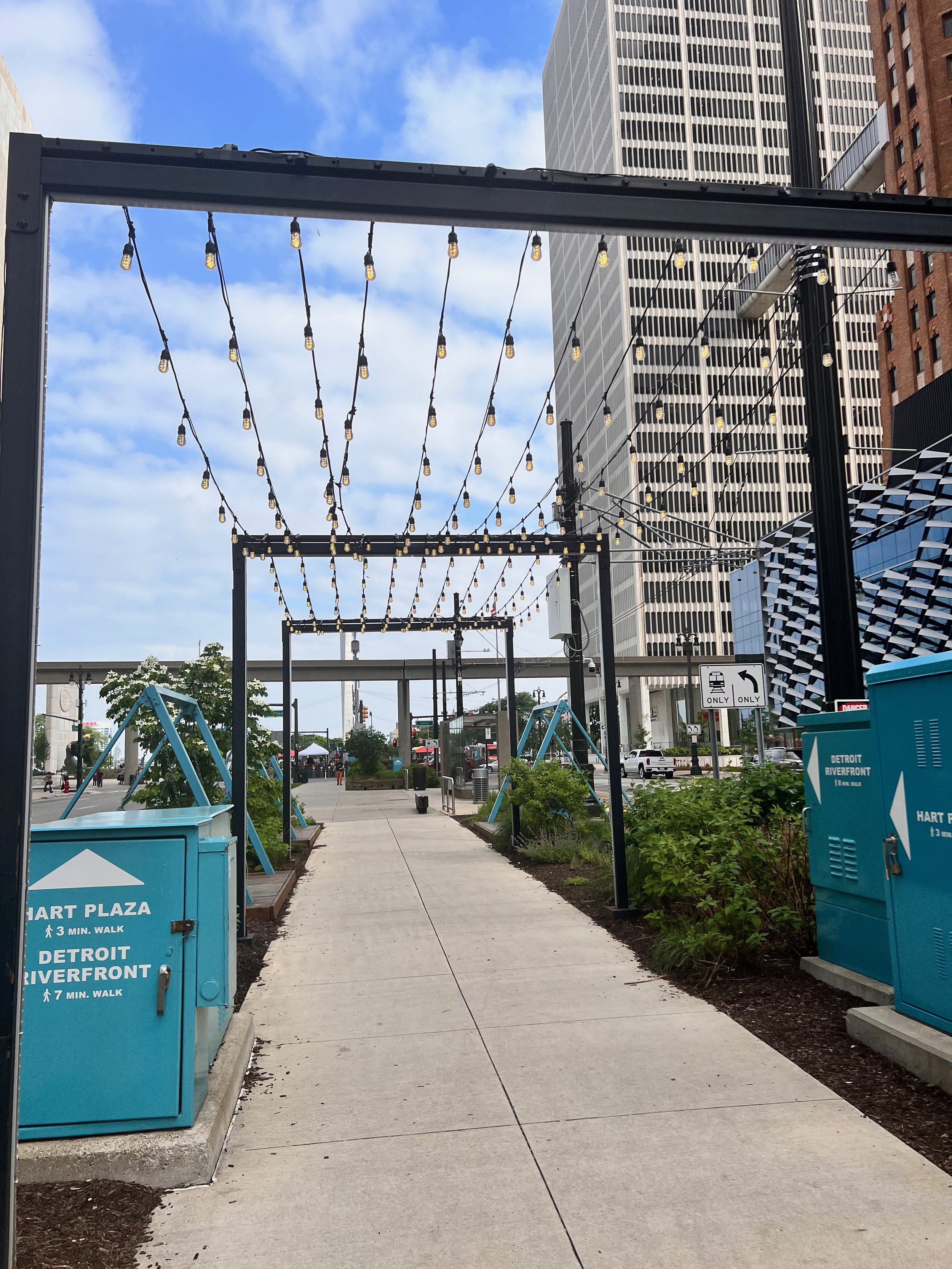 After Ann Arbor, we made our way to Detroit. You know what? Detroit gets a bad rap. I thought it was a really cool city! We had lots of recommendations from our friend Emily (and we now know her friend Tory, who is from Detroit and is the originator of said recommendations), so I’m sure that helped. We stayed in a Sonder (see my blog post about Atlanta for how much we love Sonder) that was right in the middle of downtown Detroit. We had a view of the Wayne County Building and were walking distance from Hart Plaza and the Detroit River, meaning we could wave to Canada. Our challenge was that our parking spot from Spot Hero did not have in and out privileges, which we didn’t realize until after I had gone grocery shopping and had to call someone to get let back into the parking garage. So we tried to do Detroit with only public transit. It’s probably not the worst city in the world for public transit, but being named Motor City because it put itself on the map with the car industry, it was certainly not the best city for public transit either. We made the most of it.