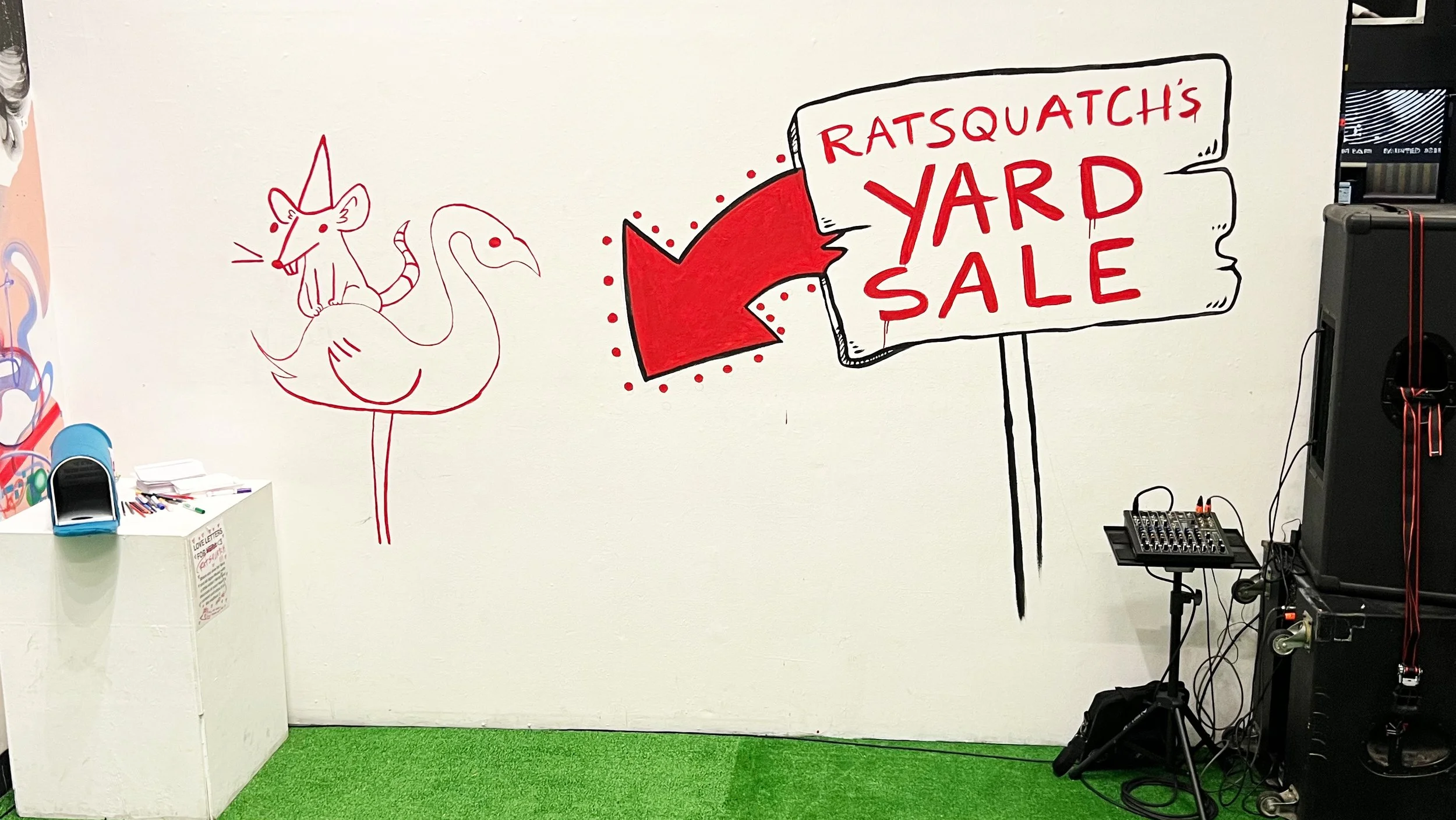 The Vera Project Generator Gala group mural detail shot. Freehand illustrations. I painted everything surrounding the I ♥️ Vera rat, which was painted by Van